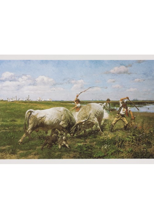 Képeslap Vastagh Géza: Verekedő bikák